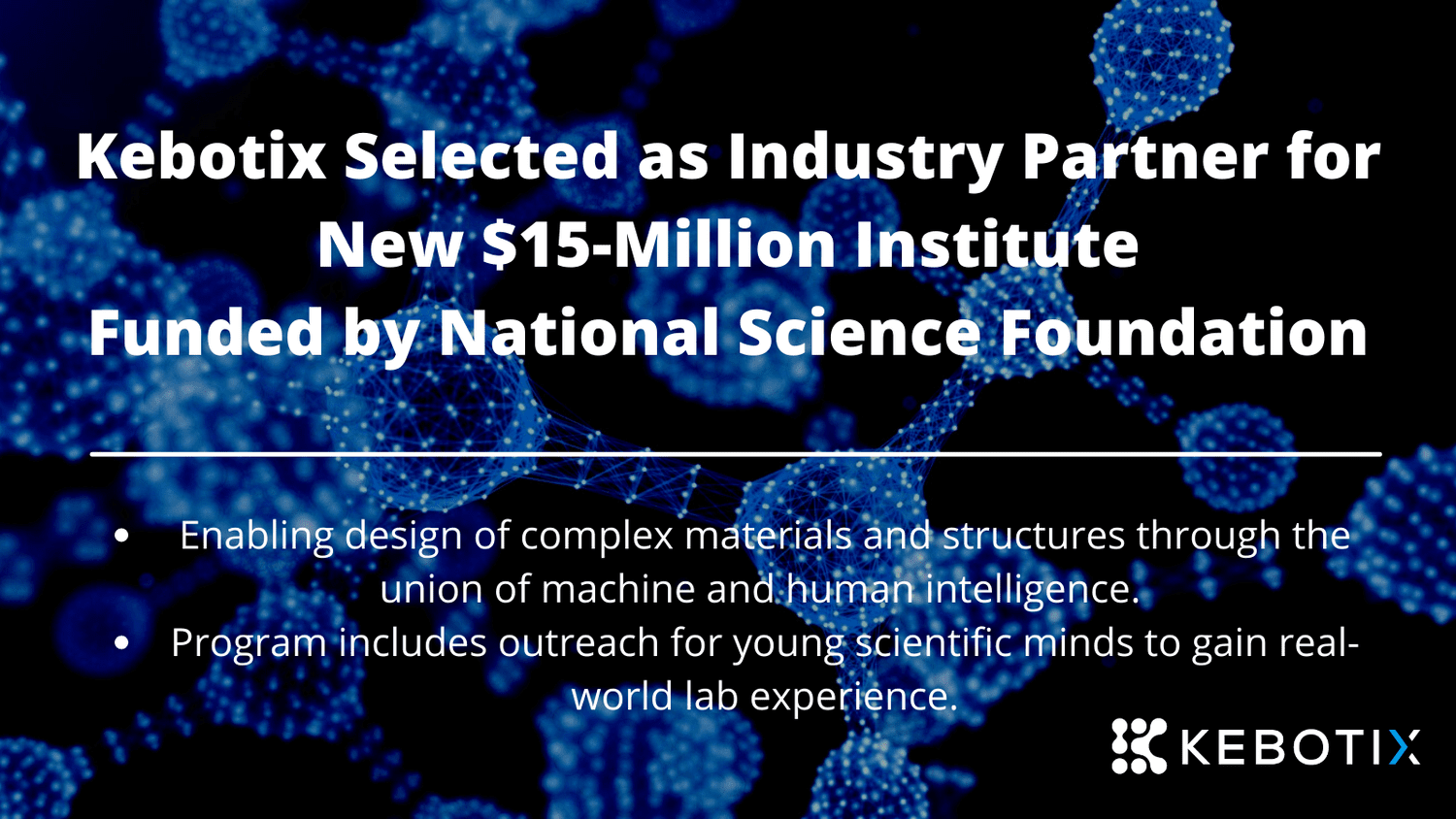 Kebotix Selected as Industry Partner for New $15-Million Institute Funded by National Science Foundation